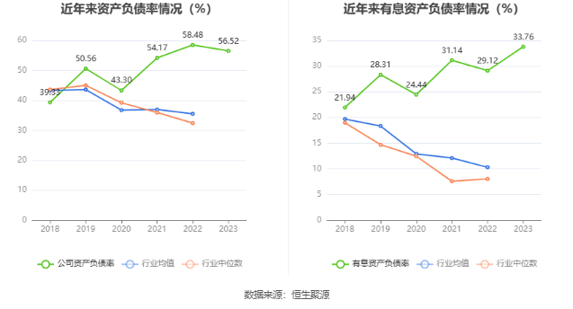 在偿债才略方面,公司2023年年末金钱欠债率为56.52%,比较上年末下落1.96个百分点;有息金钱欠债率为33.76%,比较上年末高潮4.64个百分点。
