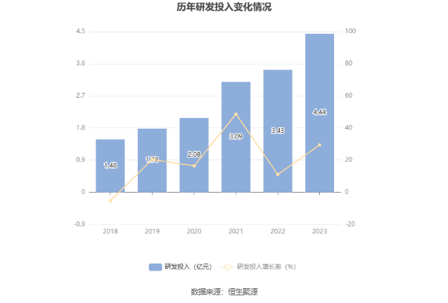 2023年全年,公司研发干预金额为4.44亿元,同比增长29.47%;研发干预占贸易收入比例为2.50%,比较上年同时下落0.05个百分点。此外,公司全年研发干预成本化率为0。
