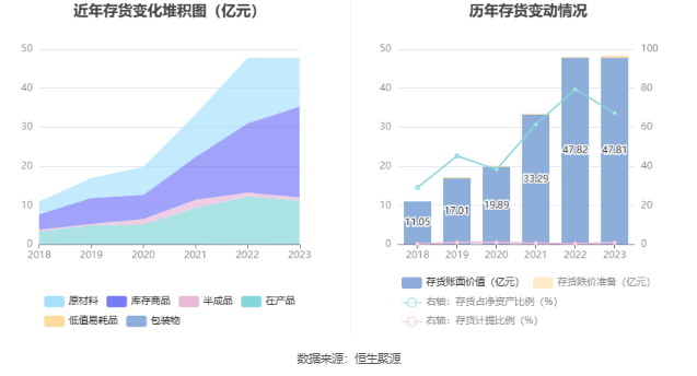 从存货变动来看,死一火2023年年末,公司存货账面价值为47.81亿元,占净金钱的67.26%,较上年末减少113.04万元。其中,存货跌价准备为4579.81万元,计提比例为0.95%。