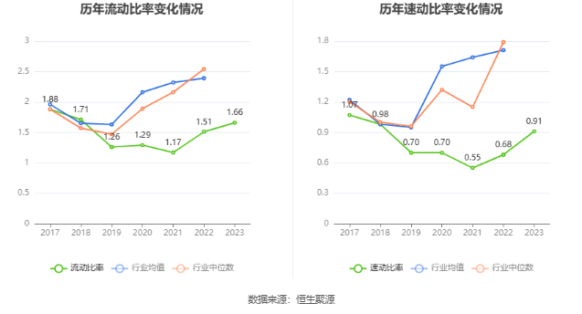 2023年,公司流动比率为1.66,速动比率为0.91。