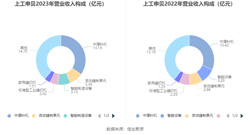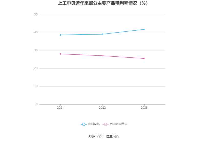分家具看,中厚料机、自动缝制单位、智能制造莳植2023年毛利率分裂为41.82%、25.60%、25.41%。
