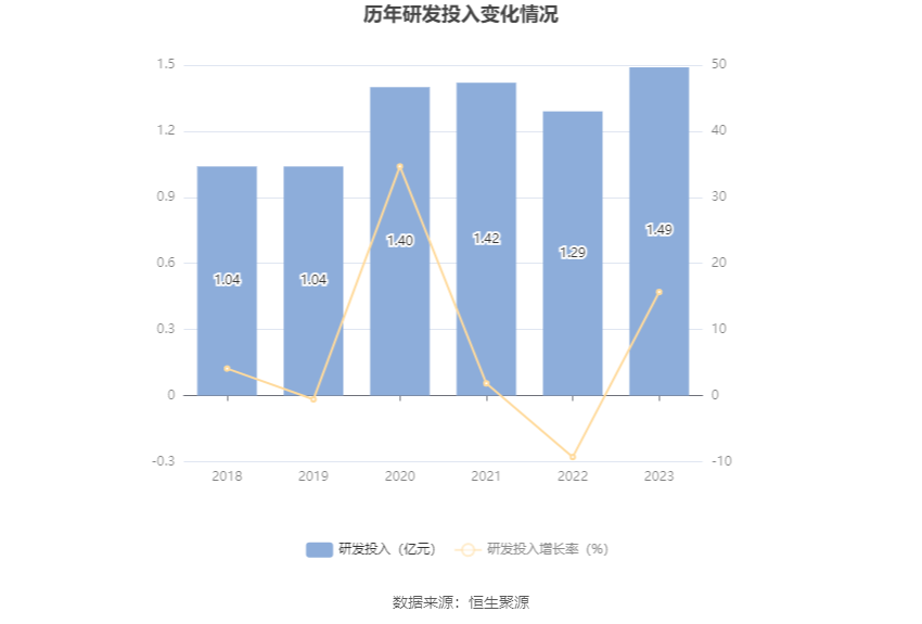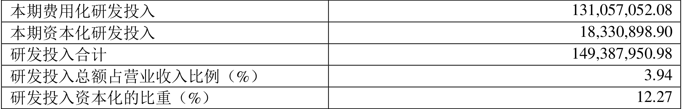 2023年全年,公司研发干预金额为1.49亿元,同比增长15.67%;研发干预占营业收入比例为3.94%,比较上年同时上涨0.06个百分点。此外,公司全年研发干预成本化率为12.27%。