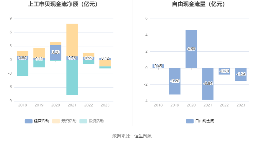 进一步统计发现,2023年公司解放现款流为-1.54亿元,上年同时为-0.78亿元。