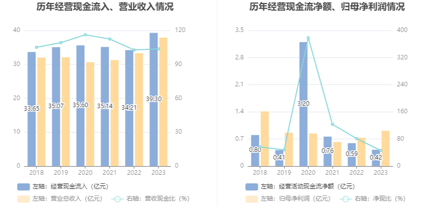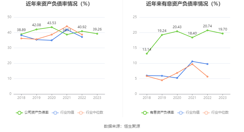 在偿债才气方面,公司2023年年末钞票欠债率为39.26%,比较上年末下落1.66个百分点;有息钞票欠债率为19.70%,比较上年末下落1.04个百分点。