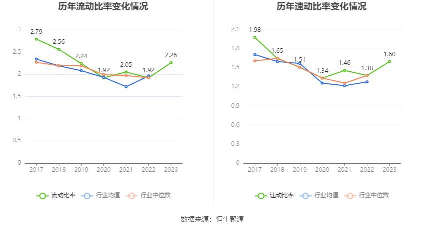 2023年,公司流动比率为2.26,速动比率为1.60。