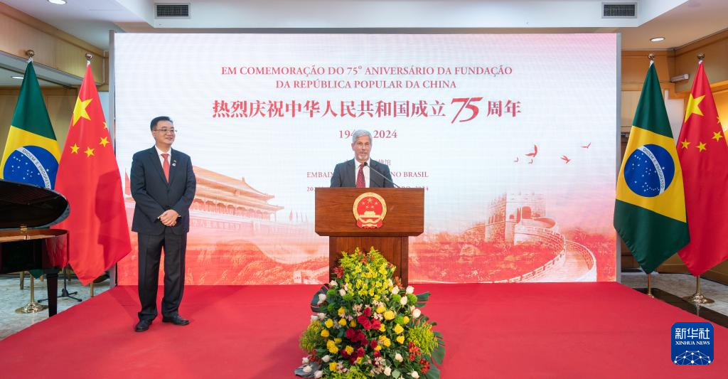 9月25日世博体育,巴西副外长劳德马尔(右)在巴西利亚举行的庆祝中华东说念主民共和国缔造75周年理财会上致辞。新华社记者 王天聪 摄