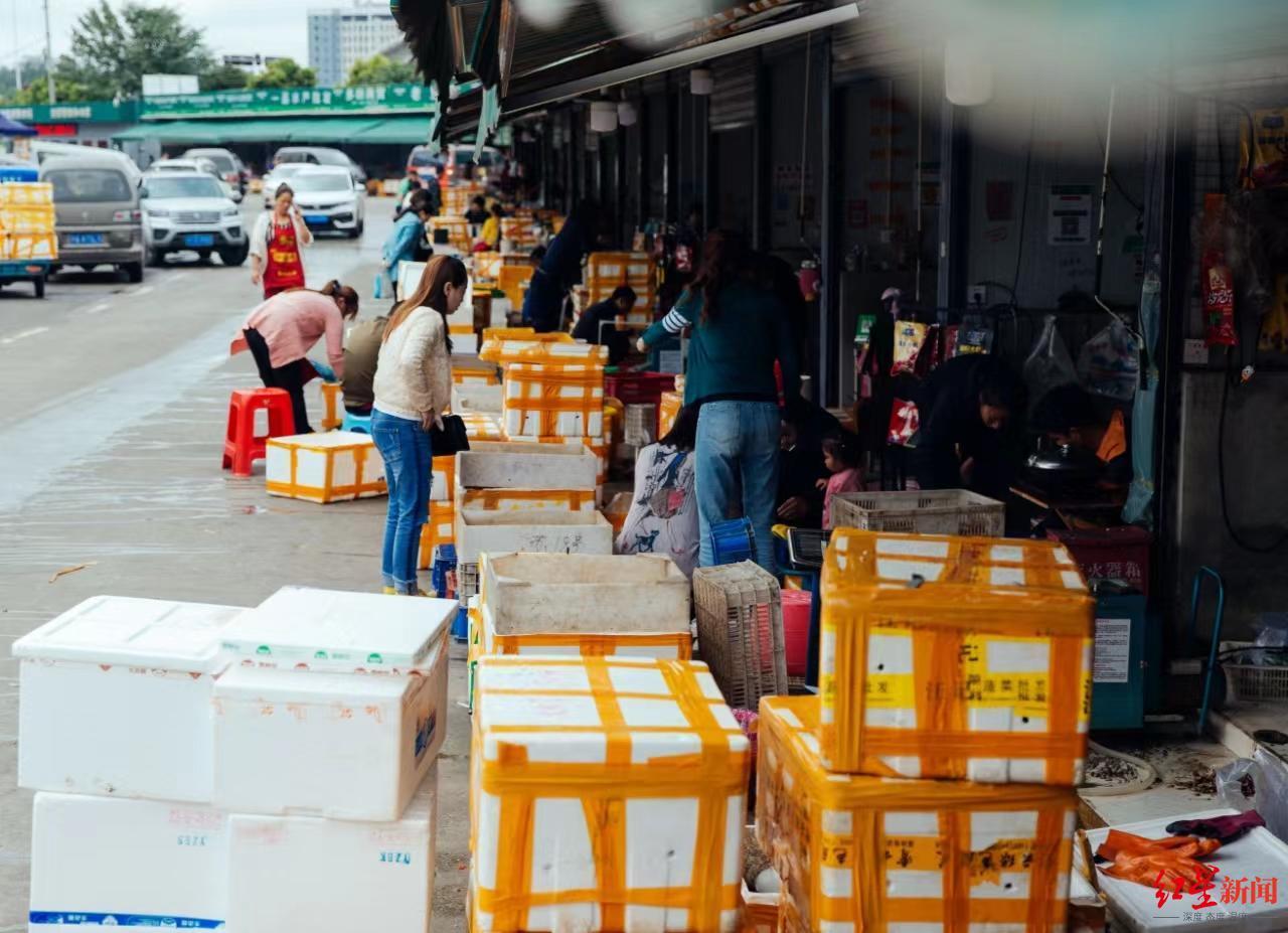他臆想,海吉星市集每天小龙虾出货量为100多吨,节沐日和周末翻倍。商店、餐饮商按件起批,一件50斤,市民购买从几斤到十几斤不等。